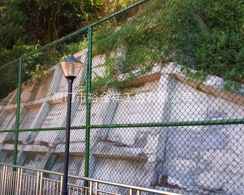 在水泥石屑層施工結(jié)束維護(hù)過程中,要將一切預(yù)埋件工程悉數(shù)裝置結(jié)束,施工根底第一層找平地墊時,要按圖紙的規(guī)劃要求,將預(yù)埋件悉數(shù)預(yù)埋好,網(wǎng)柱預(yù)埋件選用250×250×12mm鋼板,預(yù)埋深度為500mm,燈柱選用400×400×14mm鋼板,預(yù)埋深度為600mm長寬為500×500mm,預(yù)埋線管為PVC膠管,預(yù)埋深度為120mm,護(hù)欄網(wǎng)柱選用專用預(yù)埋件進(jìn)行預(yù)埋。圍欄網(wǎng)裝置包含立桿、上下橫桿及圍網(wǎng),一切立桿、橫桿、圍欄及門都選用醇酸紅防銹底漆涂兩層以上,再選用醇酸野外磁漆涂兩道,顏色為綠色,而且圍網(wǎng)裝置包含扁鐵和一切零配固定件,立桿為:65鋼管,橫桿為50鋼管,圍網(wǎng):包膠圍網(wǎng),網(wǎng)距為45mm×45mm,外徑為3.9mm,內(nèi)徑為2.5mm高度為4.0m,顏色為綠色,門是50鋼管架,圍網(wǎng)類型與圍網(wǎng)共同。